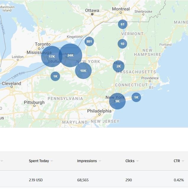 Here is an example of a geotargeted campaign for Colleges and Universities for example: